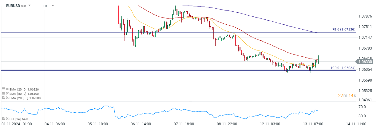 ارتفع EURUSDبعد صدور تقرير مؤشر أسعار المستهلك في أكتوبر. ارتفعت العقود الآجلة لأسعار الفائدة الأمريكية قصيرة الأجل بعد صدور التقرير؛ ويضع المتداولون في الحسبان احتمالات أقوى لخفض أسعار الفائدة من قِبَل بنك الاحتياطي الفيدرالي في اجتماع ديسمبر.
