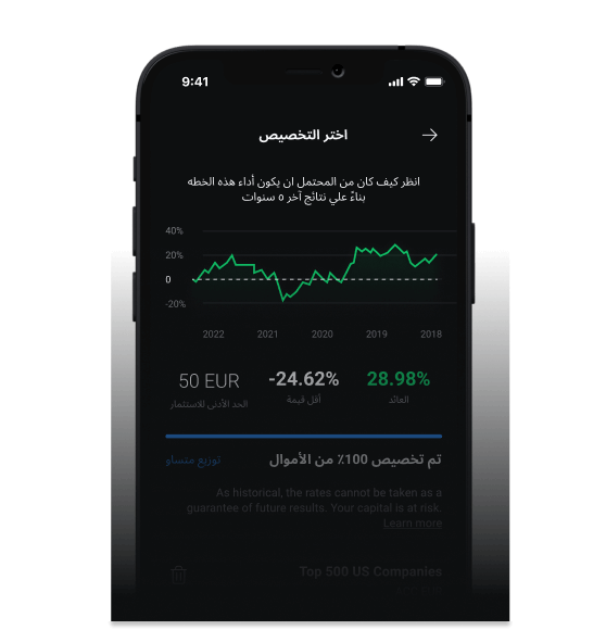 اكتشف طريقة ذكية للاستثمار بشكل سلبي في صناديق المؤشرات المتداولة. ستتيح لك الواجهة البسيطة بناء خطة استثمار خاصة بك بسهولة ، وستتيح لك المدفوعات التلقائية تمويلها بانتظام