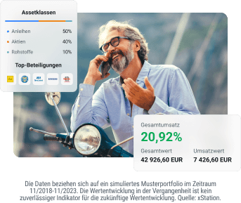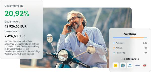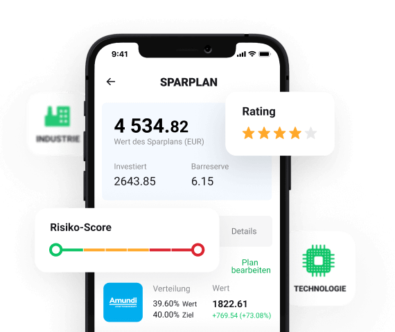 Die einfache Handhabung der App macht es möglich, Ihren persönlichen Sparplan in kürzester Zeit schon ab 15 Euro zu erstellen. Die von uns angebotenen Finanzinstrumente sind riskant. Investieren Sie verantwortungsvoll.