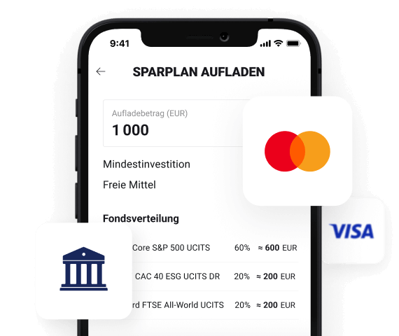 Sie können bereits ab wenigen EUR investieren und dabei aus verschiedenen Einzahlungsmethoden wählen, darunter kostenlose und sofortige Optionen. Richten Sie regelmäßige Zahlungen ein, die regelmäßig in Ihren Sparplan investiert werden.
