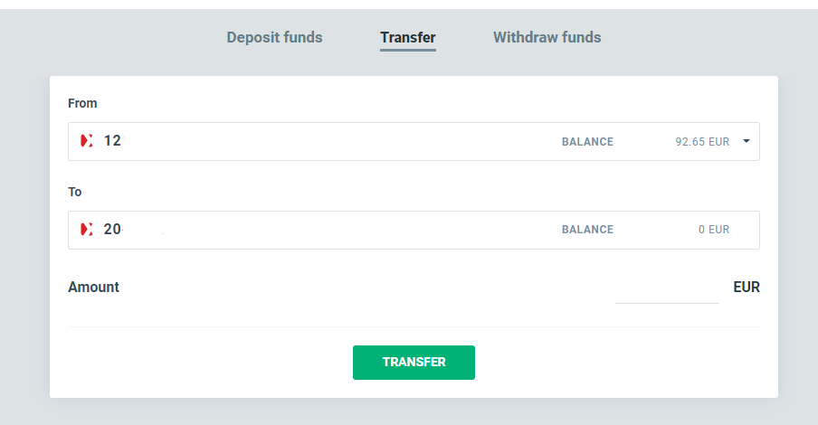 La transferencia de fondos es posible tanto para cuentas de inversión en la misma divisa como en dos divisas diferentes.