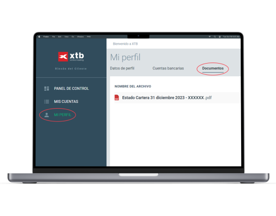 XTB te facilita por defecto un documento PDF en el que aparece la información relativa a las Acciones y ETFs que no estén depositados en España, tales como el nombre de las Acciones y/o ETFs, el número de títulos, el ISIN, el país donde están depositados los títulos, la divisa y el valor de cada posición abierta a 31 de diciembre.