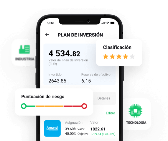 Crea tu Plan de forma sencilla gracias a la interfaz intuitiva que te guiará paso a paso. Empieza a invertir desde tan solo 15 euros. Invertir implica riesgos