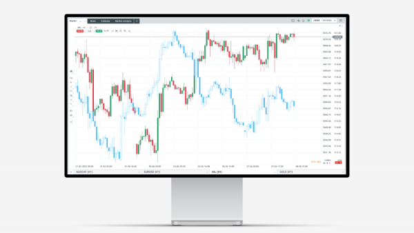 Avec xStation 5, vous pouvez mettre jusqu’à 5 marchés sur un graphique. Cela peut être fait très simplement avec l’icône ‘Comparer graphiques’ de la barre d’outils: