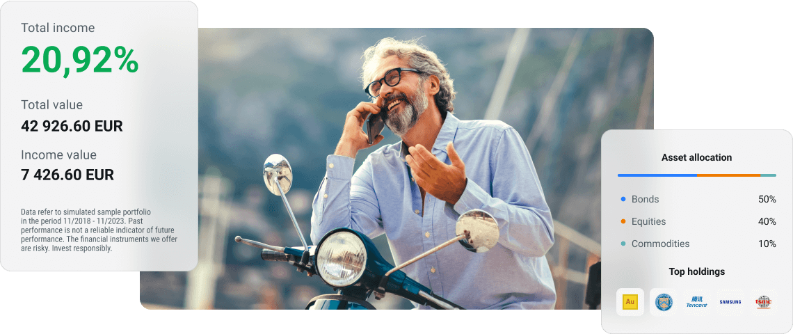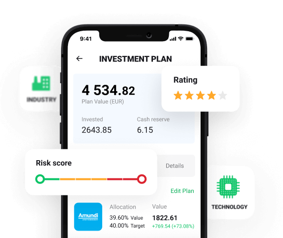 Top up your account regularly and invest automatically with Auto Invest. Simply select a specific amount, period, and deposit method and your funds will be systematically invested in ETFs of your choice, accordingly to the structure of your Plan.