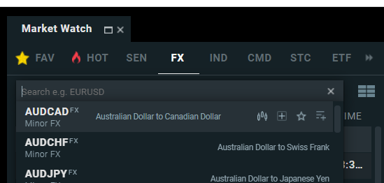Gli strumenti disponibili possono anche essere cercati dalla finestra della vista del mercato sulla piattaforma xStation.
