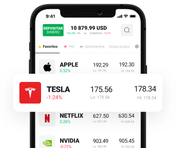 *Los instrumentos financieros que ofrecemos conllevan riesgo. Las acciones fraccionarias (FS) son un derecho fiduciario adquirido de XTB sobre partes fraccionarias de acciones y ETF. Los FS no son un instrumento financiero separado. Los derechos corporativos limitados están asociados con FS. Familiarízate con la documentación legal relevante en la sección de Información legal de la web.