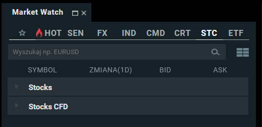 Akcje (oznaczone na platformie xStation jako STC) to papiery wartościowe świadczące o udziale ich właściciela (akcjonariusza) w kapitale spółki akcyjnej oraz uprawniające do udziału w podziale majątku i zysku firmy (dywidenda).