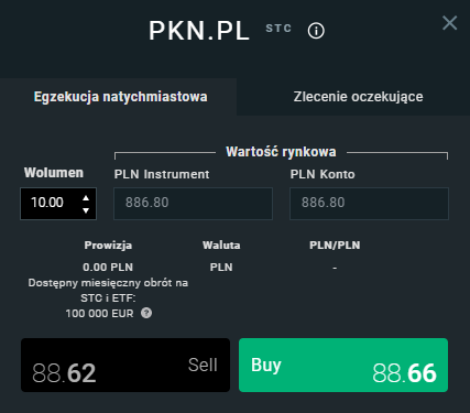 Akcje dostępne są na platformie xStation oraz w aplikacji mobilnej.. Aby otworzyć pozycję, wyszukaj zakładkę STC w sekcji Market Watch i wybierz instrument z sekcji Stocks. Następnie dwukrotnie kliknij nazwę instrumentu i pojawi się okno zlecenia. Wybierz wolumen (ilość akcji, którą chcesz kupić) i kliknij Buy.