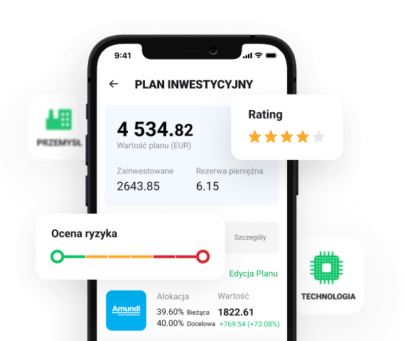 Intuicyjny interfejs pozwoli Ci łatwo zbudować swój Plan i zainwestować określone fundusze - już od kwoty 50 PLN. Oferowane instrumenty finansowe są ryzykowne. Inwestuj odpowiedzialnie.