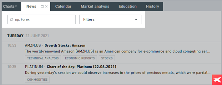 É importante manter-se atualizado sobre as notícias e lançamentos que vão surgindo. Os investidores têm acesso às informações mais importantes sobre o mercado petrolífero graças à nossa secção de “Notícias” de mercado, onde para além da publicação dos dados macroeconómicos mais importantes, os nossos analistas acompanham o mercado a tempo real e indicam potenciais oportunidades de investimento, analisando o mercado. Também é importante que o investidor tenha acesso aos preços do petróleo em tempo real, o que é possível através da nossa plataforma xStation5.