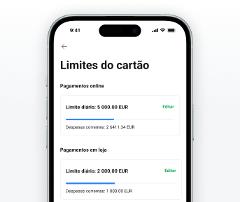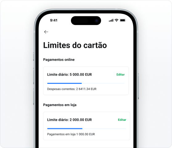 Controle eficazmente as suas despesas e estabeleça limites para transferências, levantamentos ou pagamentos com cartão.