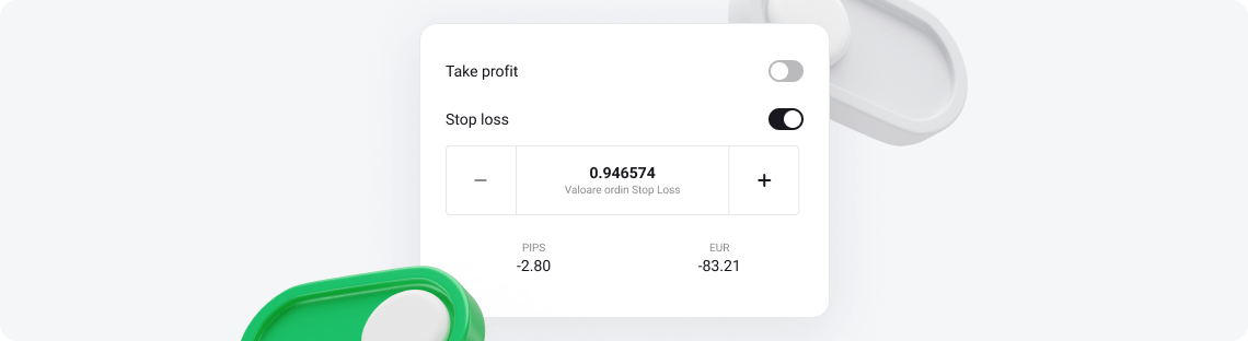 Configurează ordinele de tip Stop Loss conform preferințelor tale, astfel încât tranzacțiile să se închidă automat atunci când sunt atinse valorile stabilite.