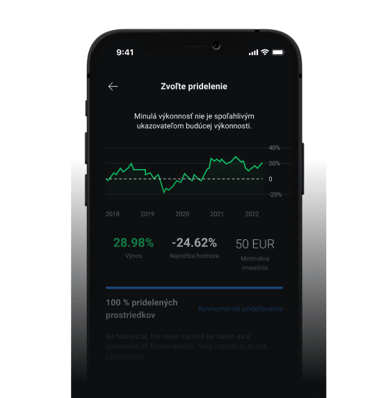 Objavte šikovnejší spôsob pasívneho investovania do ETF. Intuitívne rozhranie Vám umožní jednoducho zostaviť vlastný Investičný plán a automatické platby Vám umožnia jeho pravidelné financovanie.