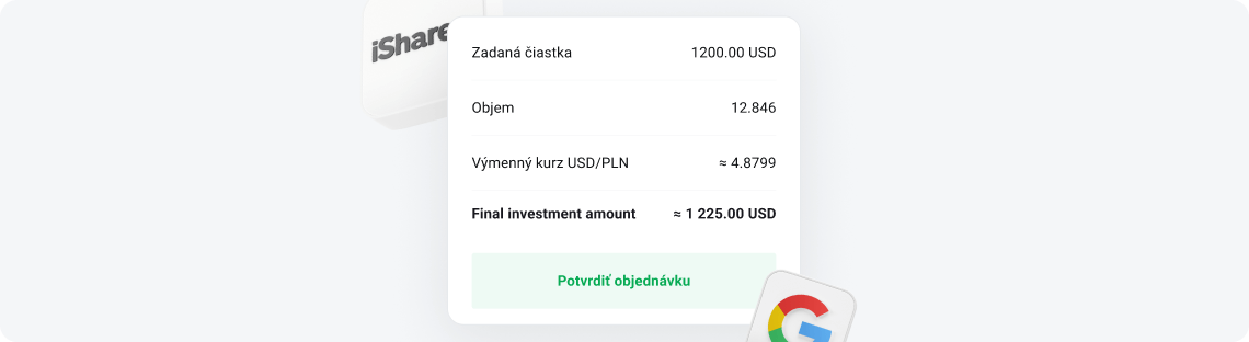 Získajte všetky podrobnosti o Vašej plánovanej transakcii pomocou vstavanej investičnej kalkulačky, ktorá automaticky prepočíta výmenný kurz za Vás.