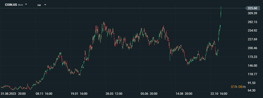 Akcie Coinbase Global Inc. (COIN.US) dosiahli nové 52-týždňové maximum 299,8 USD vďaka rastu kryptomenového trhu, čo viedlo k nárastu ceny akcií o 191,37 % za posledný rok. Tento rast odráža dôveru investorov v Coinbase aj v budúcnosť kryptomien. Výsledky za 3. štvrťrok 2024 ukázali silné základy, pričom Coinbase dosiahol pozitívny upravený EBITDA už siedme štvrťrok za sebou a oznámil spätný odkup akcií za 1 miliardu USD. Napriek poklesu príjmov z transakcií sa očakáva, že príjmy z predplatného a služieb v roku 2024 prekročia 2 miliardy USD, čo ukazuje posun od príjmov založených na transakciách.