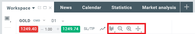 Từ thanh công cụ này, bạn có thể dễ dàng thay đổi loại biểu đồ, phóng to và thu nhỏ và điều chỉnh vị trí biểu đồ.