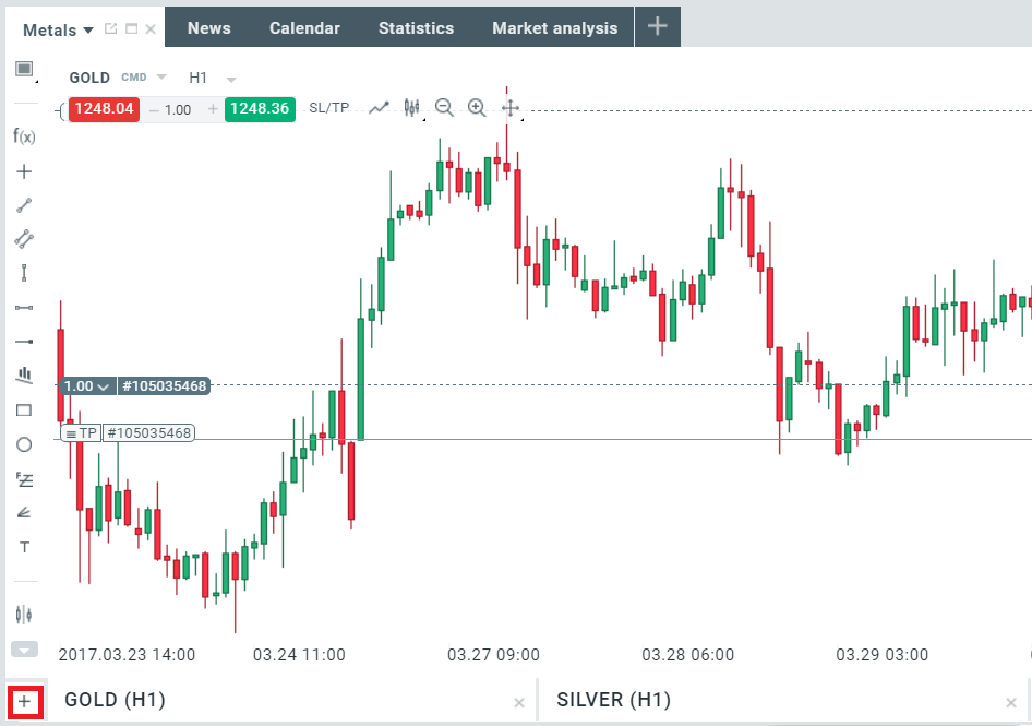 Khi bạn đã tạo nhóm cho kim loại, chỉ cần sử dụng “+” trên góc biểu đồ phía dưới bên trái để thêm thị trường để phân tích.