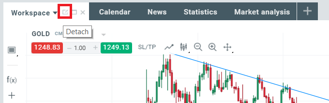 Nếu bạn sử dụng một số màn hình để giao dịch, thì có một cách đơn giản để tách khung biểu đồ và chuyển nó sang một màn hình bổ sung. Để tách khung biểu đồ khỏi mô-đun chính, chỉ cần chọn biểu tượng sau: