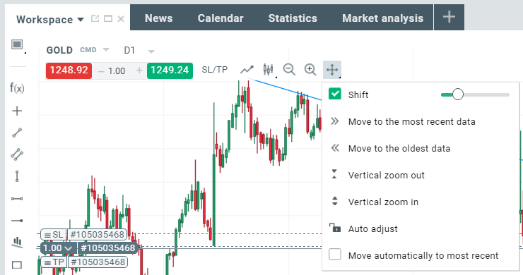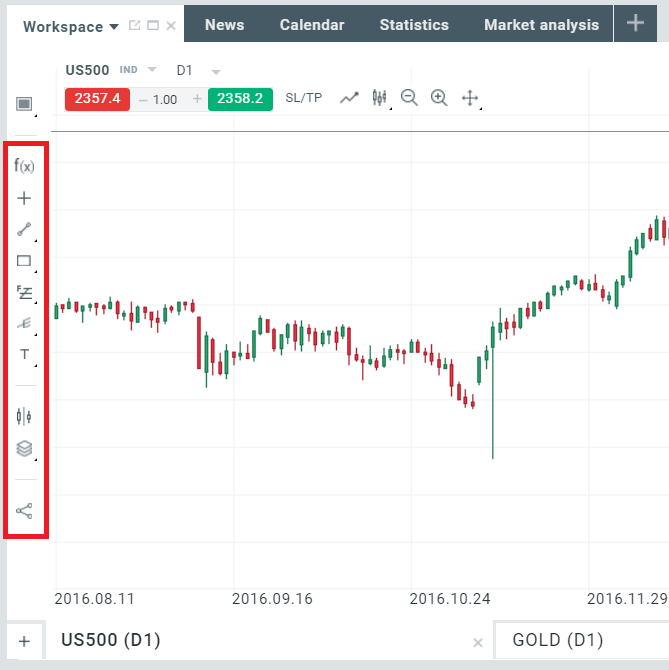 Để áp dụng bất kỳ yếu tố phân tích kỹ thuật nào, chỉ cần sử dụng thanh công cụ bên trái biểu đồ.