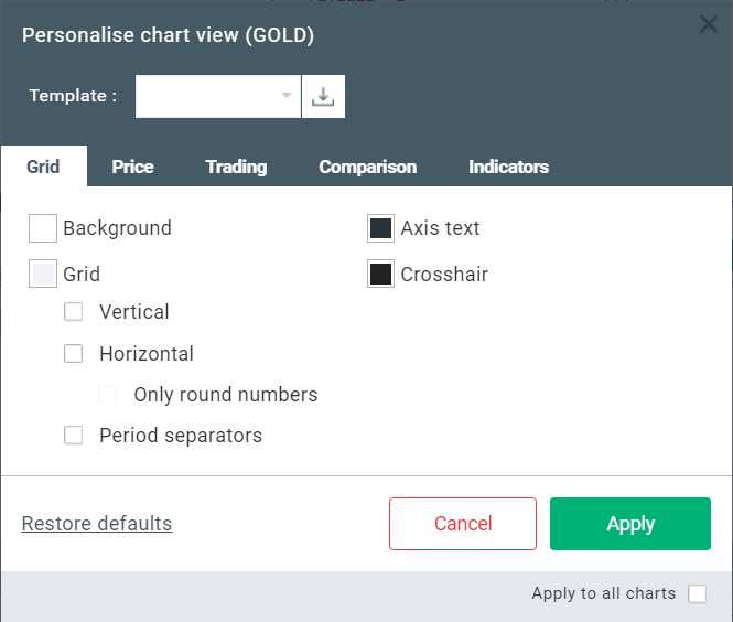 xStation 5 dễ dàng cho phép bạn tùy chỉnh sự các biểu đồ theo nhu cầu của bạn. Chỉ cần nhấp chuột phải vào biểu đồ và chọn “Personalise chart view (Cá nhân hóa chế độ xem biểu đồ)”. Một cửa sổ mới sẽ xuất hiện và tại đây, bạn có thể quản lý và tùy chỉnh biểu đồ của bạn theo sở thích của bạn.