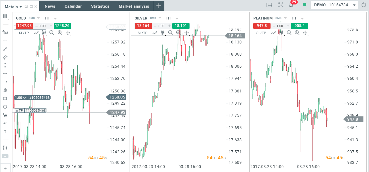 Chỉ cần nhập tên - "Kim loại" chẳng hạn - khi bạn muốn thêm các biểu đồ chỉ liên quan đến thị trường kim loại, như Vàng và Bạc. Bạn có thể tạo vô số bàn làm việc và thêm tối đa 16 biểu đồ giao dịch trên mỗi bàn.