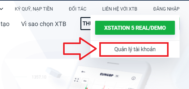 Hoặc đăng nhập vào trang quản lý tài khoản tại www.xtb.com/vn